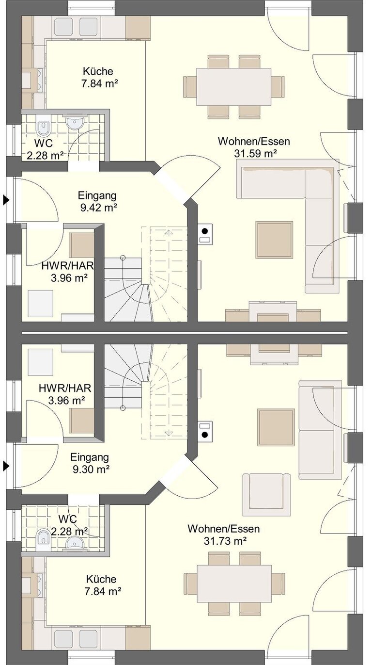 Die großzügige Raumaufteilung und die helle Atmosphäre machen dieses Doppelhaus zu einem Ort, an dem man sich wirklich wohlfühlt.