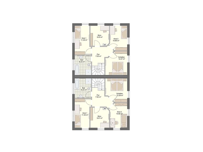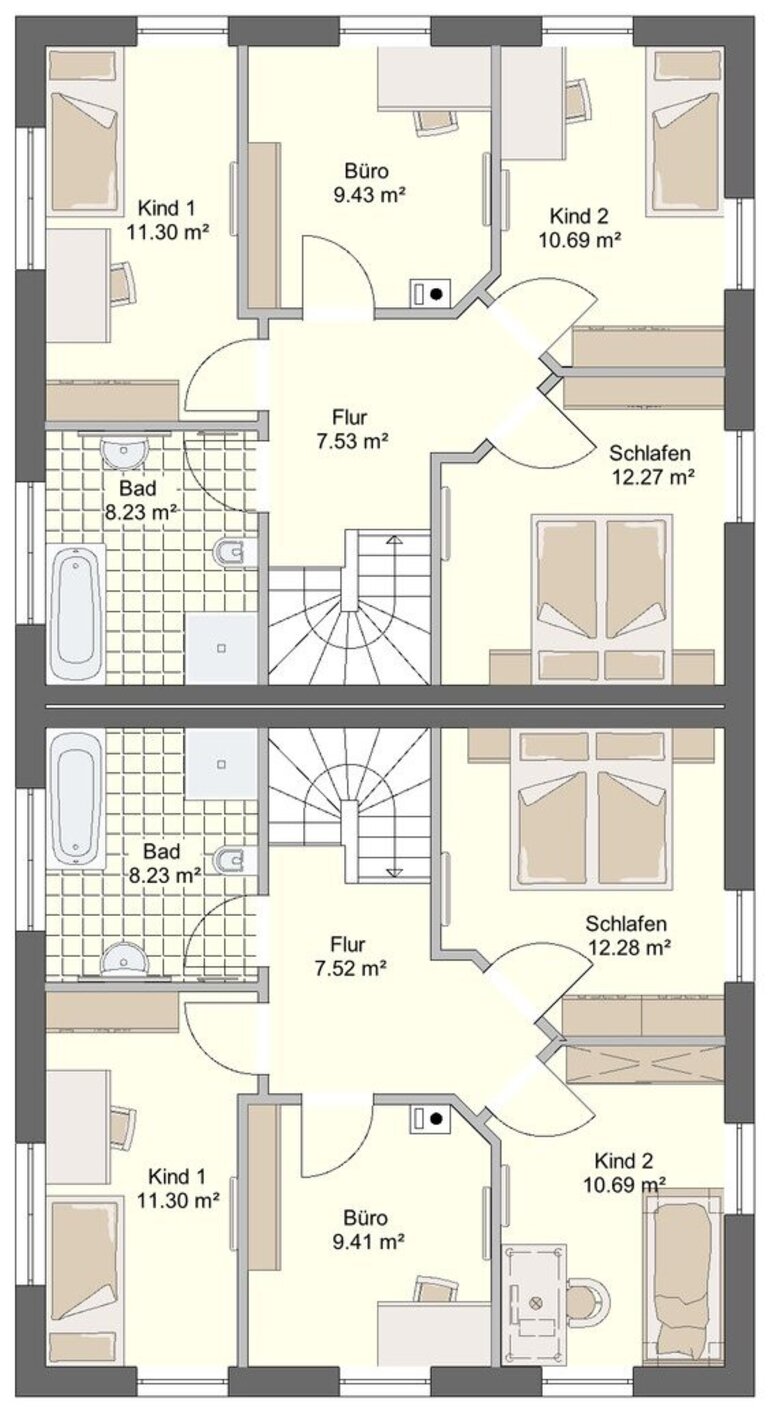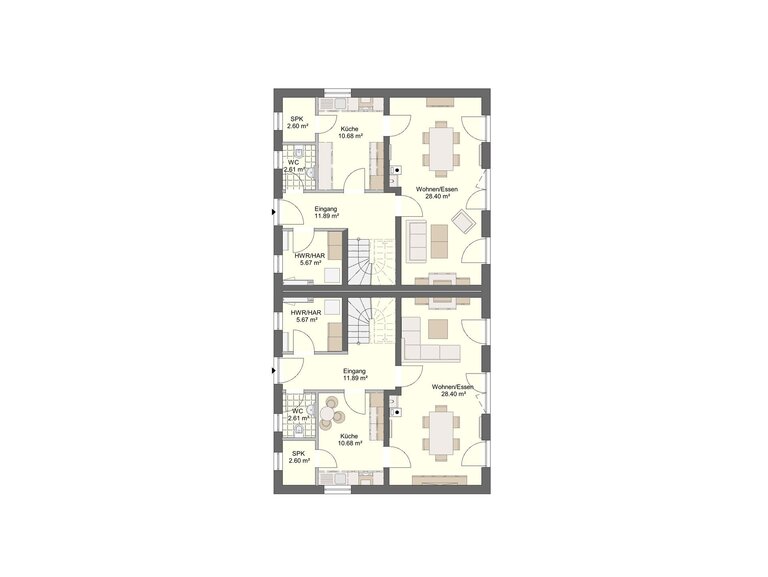 Die großzügige Raumaufteilung und die helle Atmosphäre machen dieses Doppelhaus zu einem Ort, an dem man sich wirklich wohlfühlt.