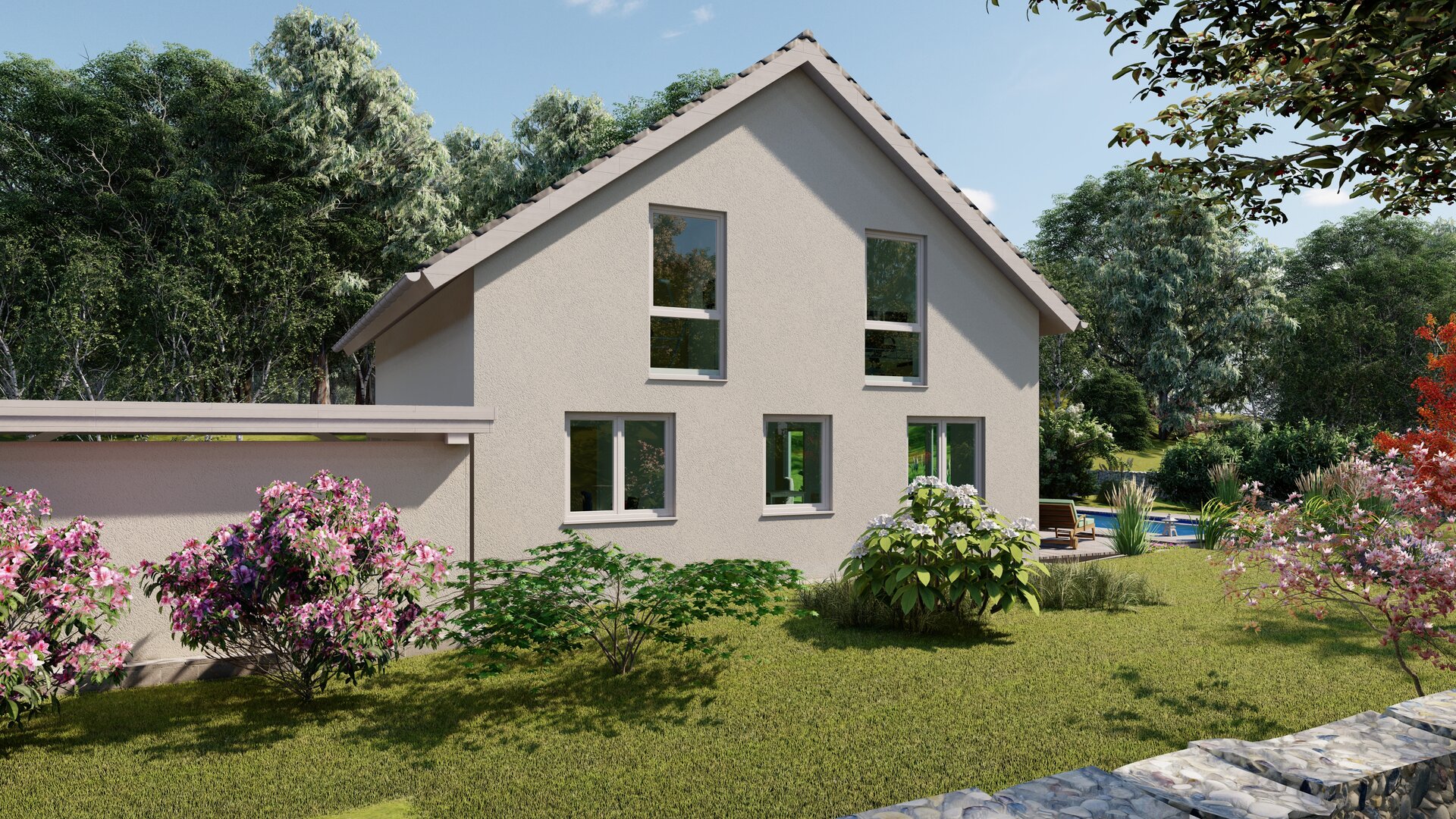 Das Idealo 135 SD 140 mit Satteldach und einem Kniestock mit 140cm verbindet die Gemütlichkeit eines traditionellen Hauses mit modernem Komfort und zeitlosem Design.