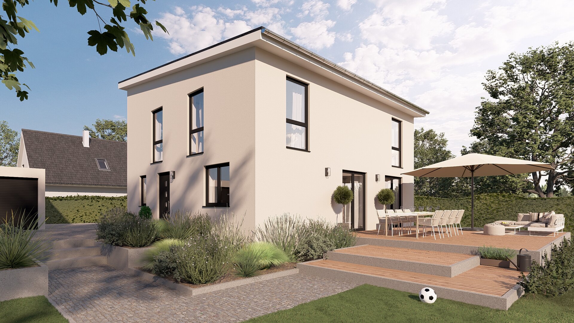 Unsere vorgeplanten Haustypen sind das Ergebnis von viel Leidenschaft und Erfahrung und stellen für viele Kunden bereits das Optimum in Bezug auf Design, Ausstattung, Grundriss sowie Energetik dar. Mit Mihm Thermobau können Sie aber auch ihr ganz individuelles Traumhaus verwirklichen: Lassen Sie sich von unseren Hausvorschlägen inspirieren und wählen Sie den Haustyp, der Ihnen am besten gefällt. Dann arbeiten Sie mit unseren Architekten zusammen, um ihn nach Ihren Wünschen anzupassen. Ob Sie mehr Platz brauchen oder die Dachform ändern wollen: Das Besondere an Ihrem schlüsselfertigen Massivhaus von Mihm Thermobau ist, dass Sie alles selbst entscheiden können – keine festen Maße, keine vorgegebenen Raumgrößen.