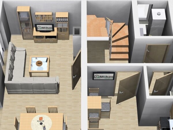 Trotz der kompakten Größe des Hauses bietet es ausreichend Platz für alle Bewohner und ermöglicht ein komfortables und funktionales Wohnen auf zwei Ebenen.
