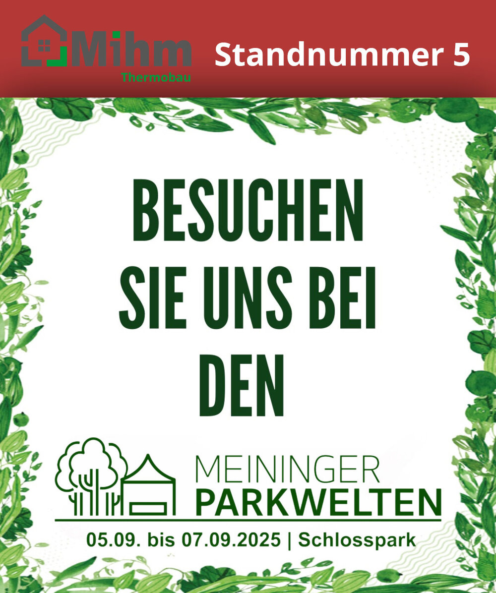 Sie haben die Möglichkeit uns auf den Meininger Parkwelten in Meiningen am 05.09. - 07. September 2025 kennenzulernen.