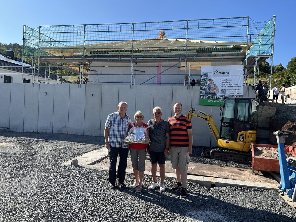 Das Richtfest am 11. August markierte einen wichtigen Meilenstein im Bauablauf: Der Dachstuhl ist fertiggestellt, und das Haus nimmt immer mehr Gestalt an. Nach der traditionellen Richtspruch-Zeremonie, bei der die Zimmerleute ihre Fertigkeiten zeigten und gute Wünsche für das Bauvorhaben aussprachen, wurde gemeinsam mit Freunden, Familie und Handwerkern gefeiert.